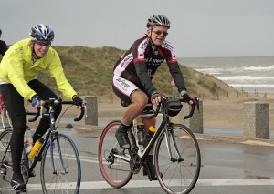 De route ging richting Katwijk en Noordwijk, dus helemaal pal op kop stond de wind meestal niet, maar er moest toch flink gebuffeld worden. Cyclopaat vond het best en probeerde op kop de boel op gang te houden, maar dat viel nog niet mee.
